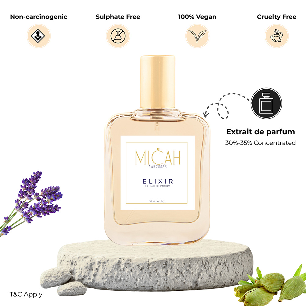 • Concentration: Extrait De Parfum, which has a 25% – 40% perfume concentration.