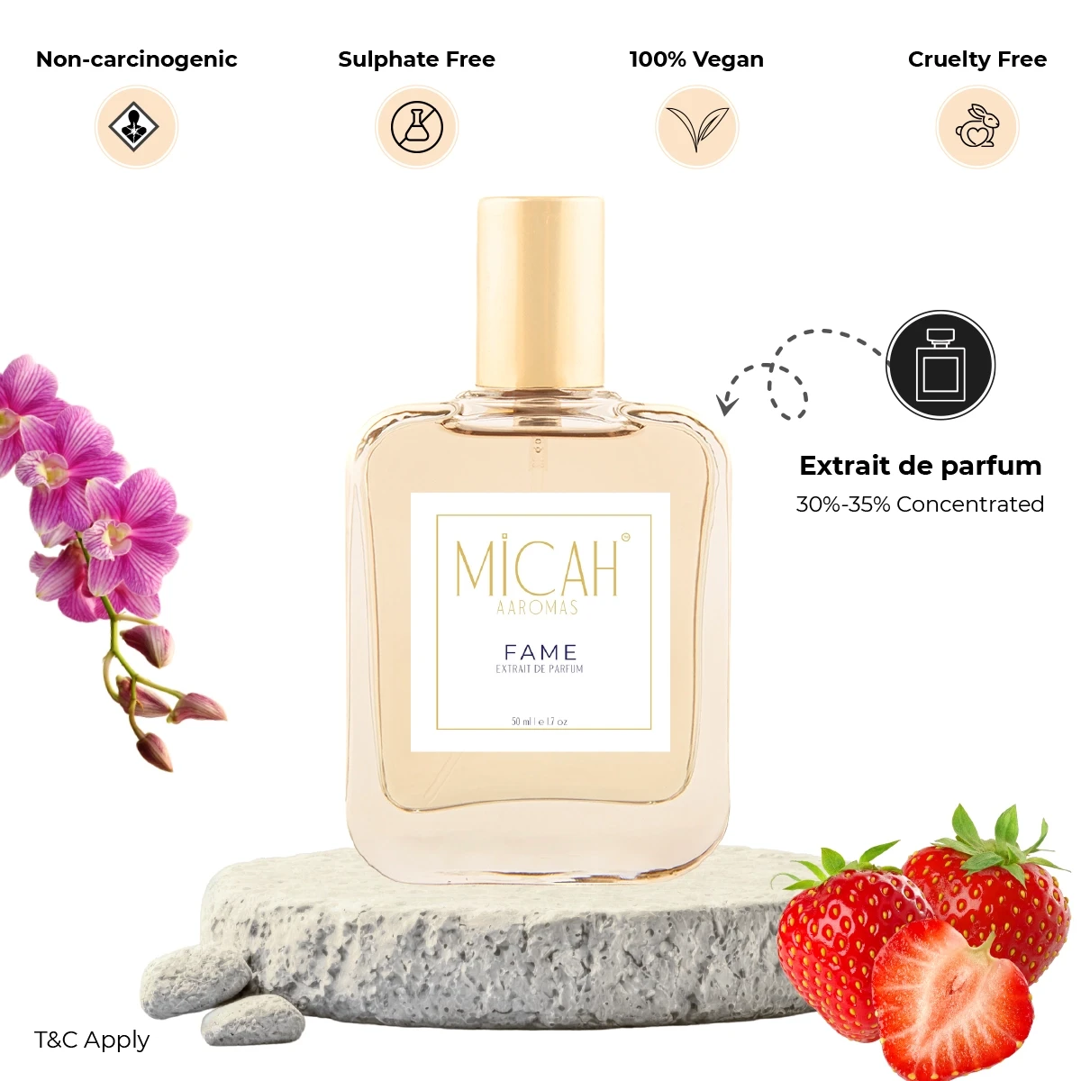 - Concentration: Extrait De Parfum, which has a 25% – 40% perfume concentration.