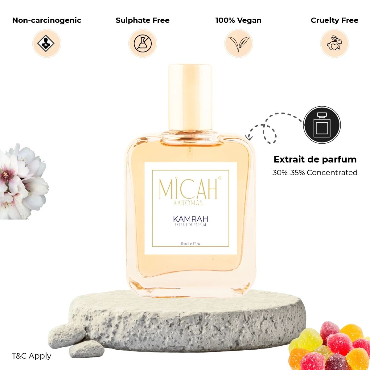 • Concentration: Extrait De Parfum, which has a 25% – 40% perfume concentration.