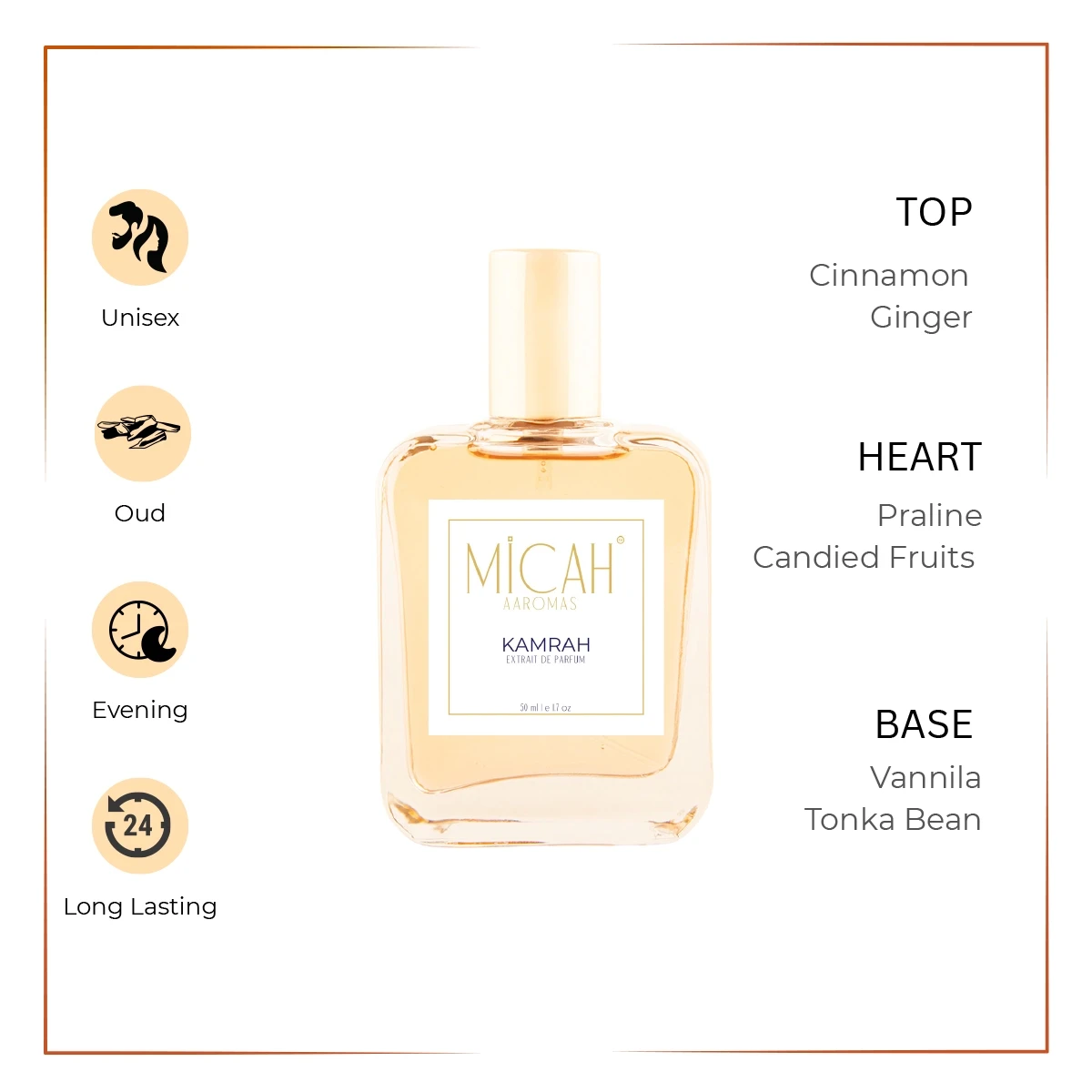 • Top notes: Cinnamon, Cardamom and Ginger