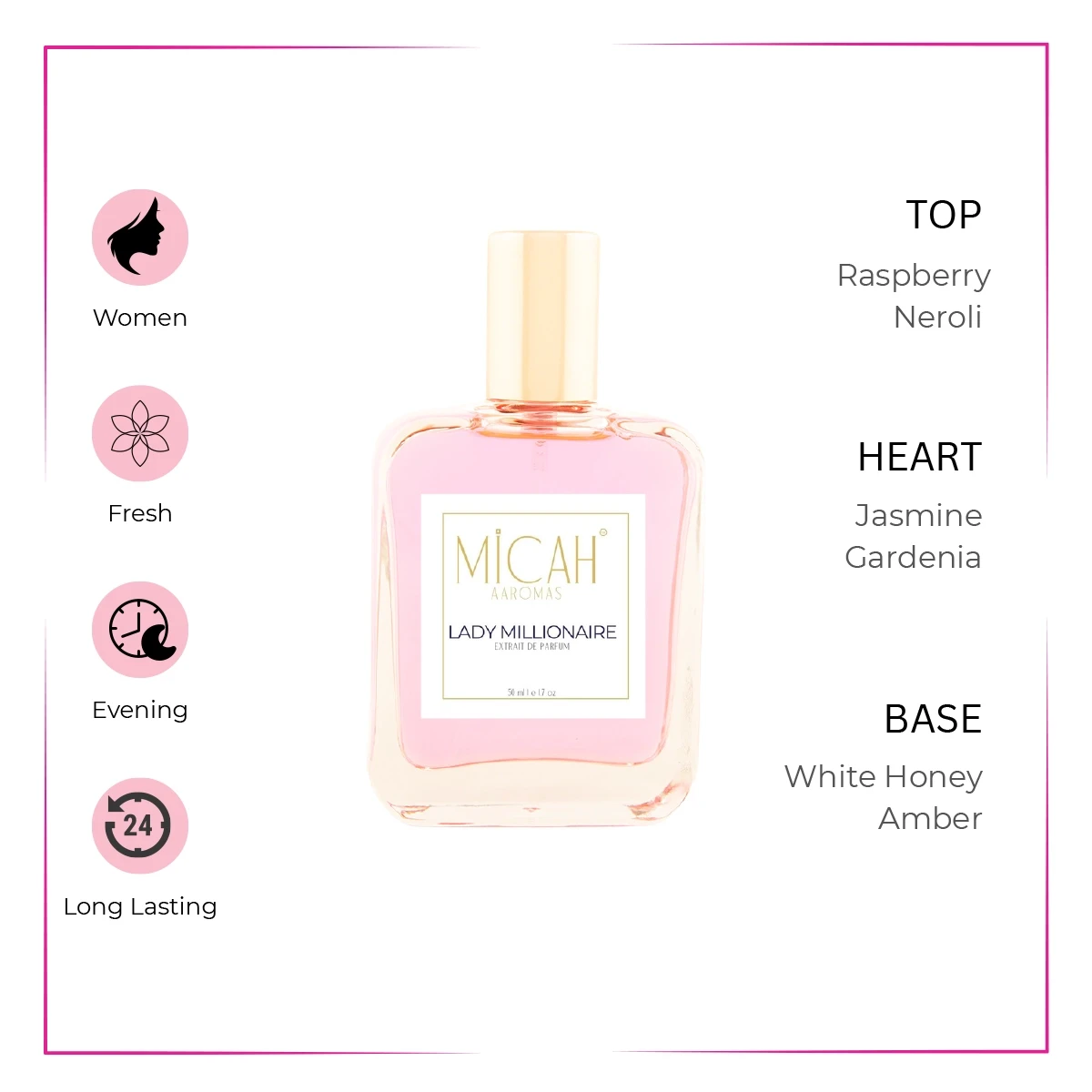 - Base notes: White Honey, Patchouli and Amber
