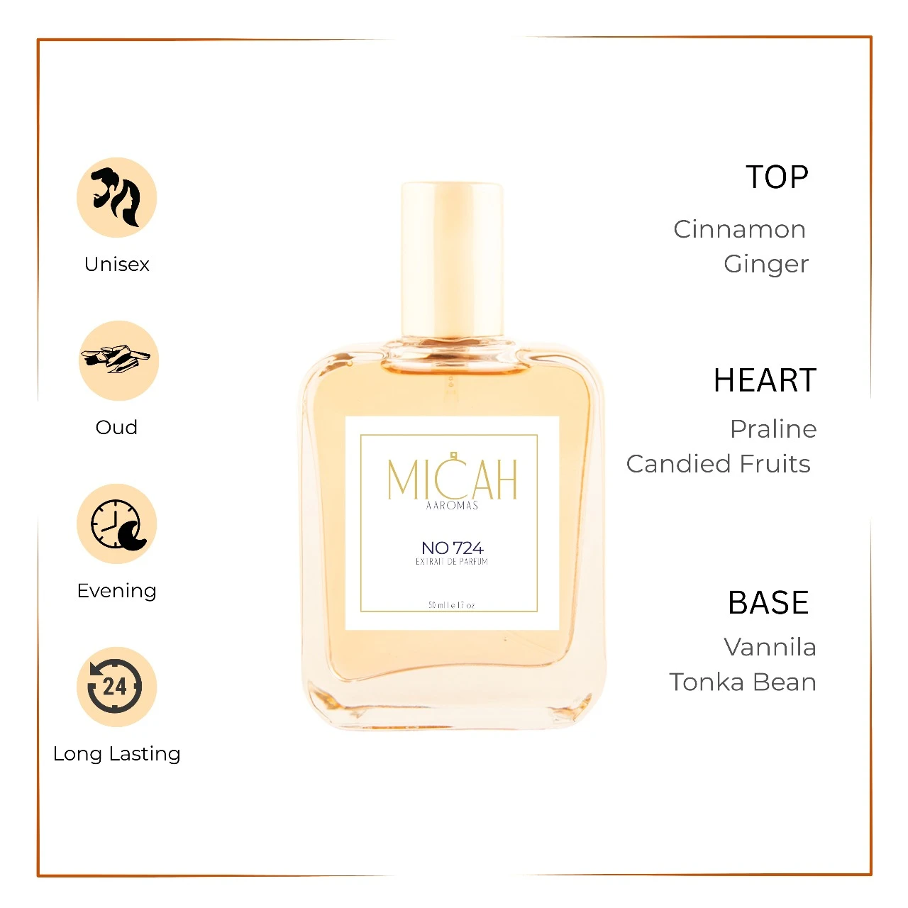 Crafted with extrait de parfum concentration (25–40%), No 724 delivers exceptional richness, depth, and long-lasting performance.
